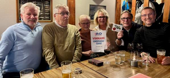 Sista segrare för den här säsongen 2019-03-27 av vårt populära Onsdags-Quiz blev "Simple Minds", som med 46 rätt av 56 möjliga tog hem en ganska knepig omgång. På andra plats kom "Five Stars" med 44 medan "Gusten" knep tredjeplatsen med 43.Grattis säger vi till segerlaget: Irina, Pia, Anders, Bengt, Erik och Lars! Onsdags-Quiz tar nu sommarlov men är tillbaka för en ny säsong i oktober.